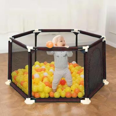 PNJB Play Fence, Hexagon Play Fence, Indoor Outdoor Kids Activity, Portable Play Centre Fence, Breathable Mesh, Coloured Balls, Three Channel Connectors, Zipper-Door