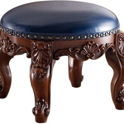 European Retro Footstool Shoe Exquisite Carving Sofa Stool Oil Wax Leather Cushion Ottomans Small Stool Living Room Household
