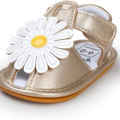 FANSU Summer Baby Sandals, Simple Fower Style Comfortable Toddler Princess Infant Baby Sandals Newborn Shoes for 0-18 Months Anti-Slip Soft Sole Velcro First Walking Shoes (11cm / 3-6 month,Gold)