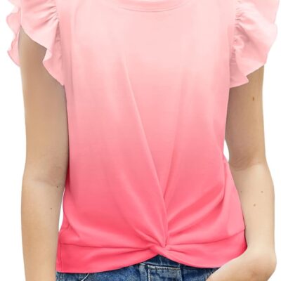 Arshiner Girls Shirt Short Sleeve Twist Front T-Shirt for Girls Cute Flying Sleeves Summer Blouse for Girls Tunic Tee Tops 5-12 Years