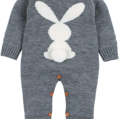 mimixiong Baby Easter Bunny Outfits Newborn Girl Boy Romper Jumpsuit Longsleeve Knit Clothes