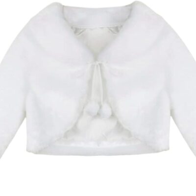 MSemis Kids Girls Long Sleeves Faux Fur Shrug Scarves Wrap Over Coat Wedding Party Bridesmaid Dress Cover Up