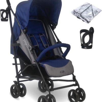 My Babiie MB02 Plus Stroller – from Birth to 4 Years (22kg), Lightweight & Compact Umbrella Fold, Travel Buggy for Toddlers, Pushchair Includes Cup Holder and Rain Cover – Blue & Grey