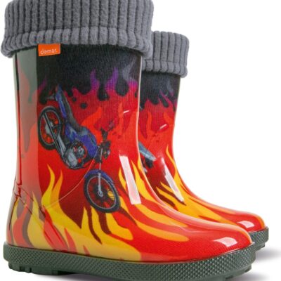 Demar Kids Boys Girls Wellies Rain Boots Warm Fleece-Lined Light Unisex Children Wellington Boots