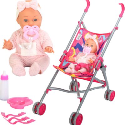 Bibi Baby Doll Set With Pushchair & Feeding Accessories – Stroller, Milk Magic Bottle, Dummy, Accessories