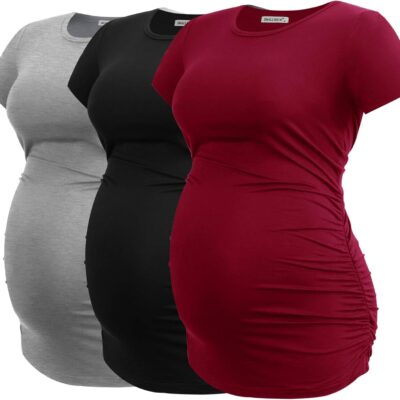 Smallshow Maternity Clothing Tops Side Ruched Pregnancy Clothes for Women 3-Pack