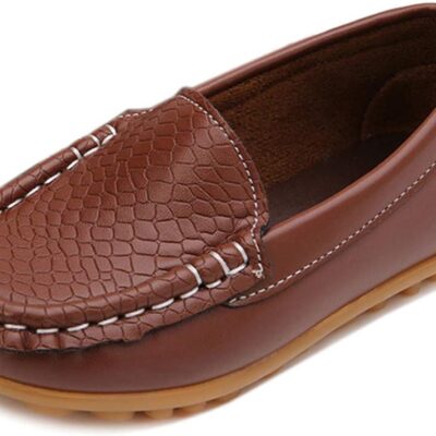 LONSOEN Toddler/Little Kid Boys Girls Soft Split Leather Loafer Slip-On Boat-Dress Shoes/Sneakers
