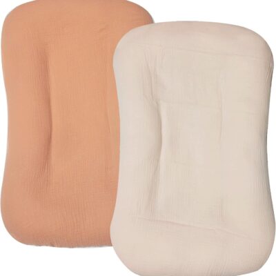 Muslin Baby Lounger Cover 2 Pack, Organic Cotton Removable Slipcover for Newborn,Baby Padded Lounger Infant Floor Seat Cover for Boys Girls