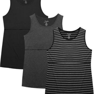 Sosolism 3 Pack Nursing Tank Tops Summer Breastfeeding Vest Casual Sleeveless Feeding Shrits for Women
