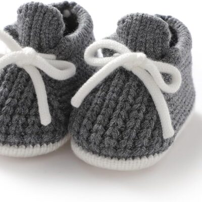 LAWKUL Baby Booties Knit Newborn Shoes Cozy First Walkers Infant Toddler Boots for Boy Girls 0-3 Months