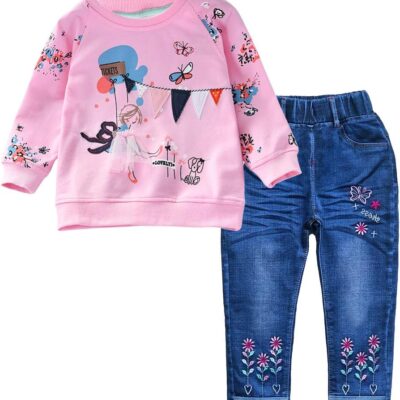 Peacolate 2-11T Toddler Big Girls Pants Clothing Set 2pcs Cotton top and Jeans