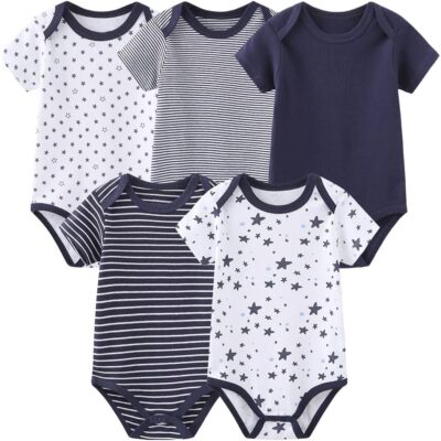 Chamie Baby Bodysuit Cotton Short Sleeve Vests for Newborn 5-Pack One-Piece Suit for Boy and Girl 0-12 Months…
