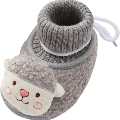 IQYU Soft lower baby shoes, baby boots, 0-18 months, first walking shoes, bowknot, children’s socks, shoes, floor socks, baby socks, baby winter boots, boys, winter, baby shoes, girls, gray, 3 Months