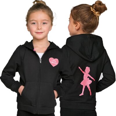 Little Ballerina Zip Hoodie – Zip Up Hooded Sweatshirt – Long Sleeve Cotton Hoodie – Zipper Top for Girls Casual Fashion for Children – Black
