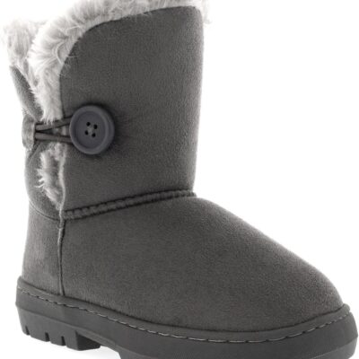 Kids Girls Button Winter Snow Rain Cosy Casual Warm Boots