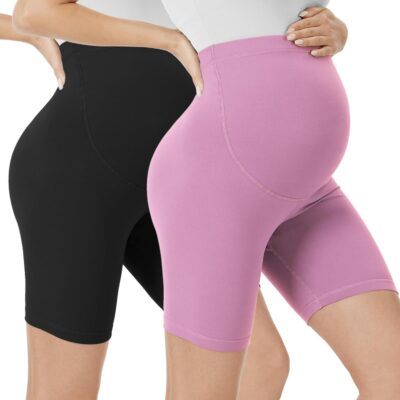 VALANDY Creamlush Maternity Shorts Over Bump Maternity Tights Belly Support Maternity Clothes Buttery Soft Adjustable Pregnancy Pants
