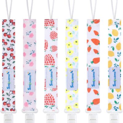Smlpuame Dummy Clips Girl,6 Pack BPA Free Soother Chain,Pacifier Holder Clips for Teether Toy,Baby Dummy Strap Clip Universal Design Fit All Pacifiers Baby Teething Toys,Newborn Baby Shower(Fruit)