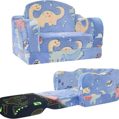 Thick Comfy Toddler Chair and Couch for Kids,2-in-1 Soft Plush Fold Out Sofa for Children,Convertible Couch to Lounger for Toddler