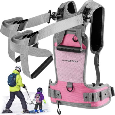 Ski & Snowboard Training Harness for Kids – 2 Guiding Straps to Steer & Control Speed – Ski Trainer Backpack w/ Adjustable Shoulder Straps & Easy Lift-Handle for Toddlers by KapStrom