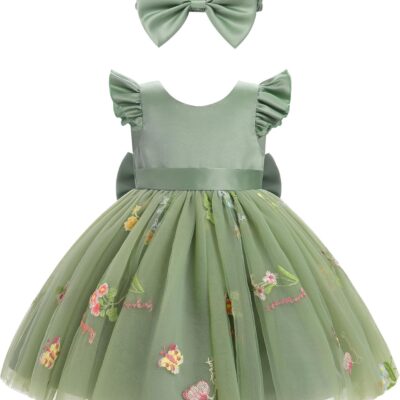Odizli Baby Girls’ Dresses Toddler Summer Flutter Sleeve Princess Tulle Tutu + Headband Birthday Wedding Party Outfit