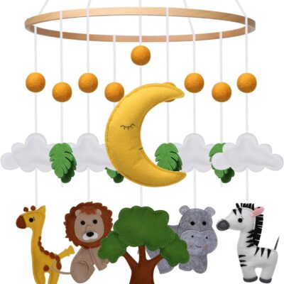 Wooden Soft Felt Baby Cot Mobile | Hanging Nursery Decoration for Crib Newborn | Nursery Decor | Wild Jungle Animals