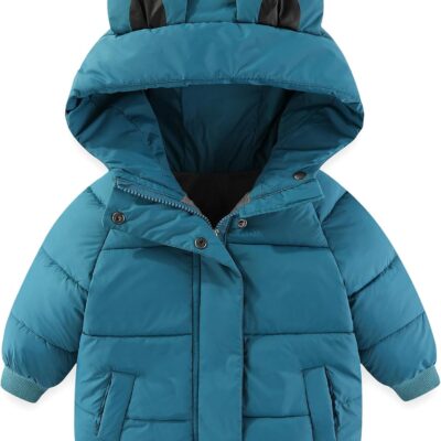 Toddler Thickend Winter Coat, Warm Fleece Puffer Jackets with Hooded, Outerwear for Baby Boys Girls, Infants, Toddlers, Kids 1-6T