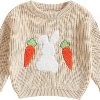 Easter Toddler Spring Baby Girl Knit Sweater Carrot Rabbit Bunny Warm Long Sleeve Pullovers Outerwear Outfit Clothes Tops