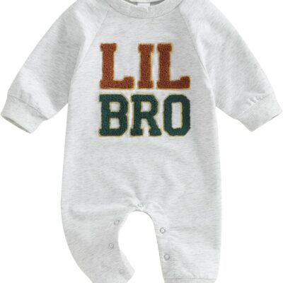 Geagodelia Newborn Baby Boy Letter Printed Little Brother Round Neck Long Sleeve Outfit Clothes Jumpsuit Sweatshirt Pullover Set