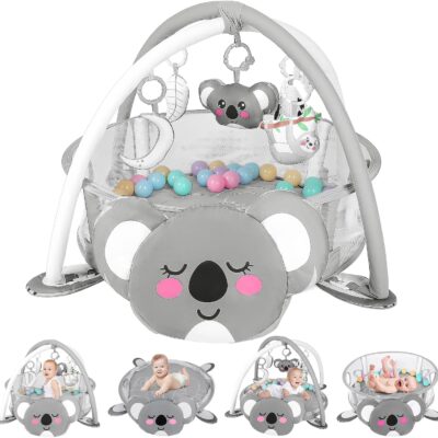 derimkcoa 4-in-1 Baby Play Mat Baby Gym,Tummy Time Mat for Floor Activity Gym Ball Pit Including 30 Balls with 5 Infant Learning Sensory Baby Toys for Newborn Toddler Boy & Girl Gifts(Koala)