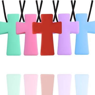 FITULABO Baby Silicone Chew Necklace, 5 Pack Sensory Chewy Buddy for Autistic Children, Anxiety Relief Soft Chew Teething Toys for Bitting Needs