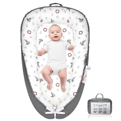 Baby Lounger for Newborn,Infant Lounger Baby Nest Cover for Babys,100% Cotton Breathable & Soft Baby Lounger Newborn Essentials for Baby 0-12 Months,Co Sleeper for Baby in Bed (Boat)