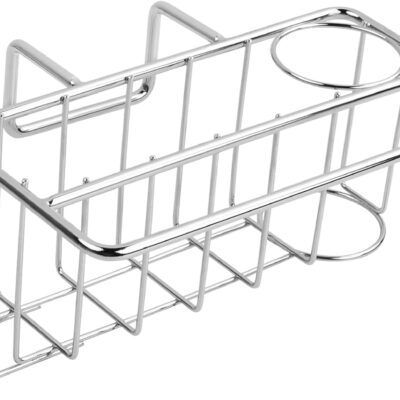 4 in 1 Kitchen Sink Organizer Rack, Stainless Steel Sponge Holder for Kitchen Sink Silver, Sponge Brush Soap Dish Dishcloth Tray Drainer, Hanging Sink Tidy Caddy for Countertop, 19.5×12.5×7.5cm