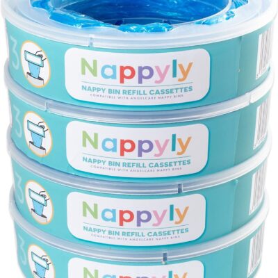 NAPPYLY nappy bin refill cassettes – Compatible with AngelCare and Litter Locker diaper disposal systems – Pack of 4 refills – 7 layer bags add extra protection and lock smells away