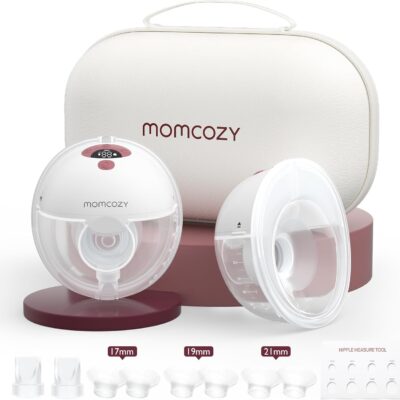 Momcozy M5 Hands Free Breast Pump, Wearable Breast Pump of Baby Mouth Double-Sealed Flange with 3 Modes & 9 Levels, Electric Breast Pump Portable – 24mm (2, Red)