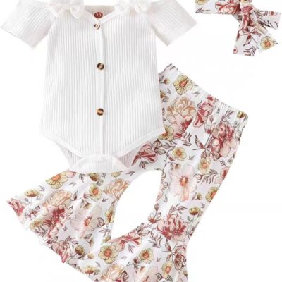 Baby Girl Clothes Set Spaghetti Strap Romper + Flared Pants + Headband Boho Summer Outfit Newborn
