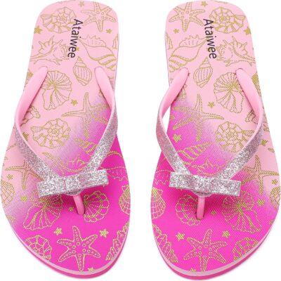 Ataiwee Girl’s Flip Flops, Little/Big Kid’s Beach Thong Colorful Printed Sandals for Children.