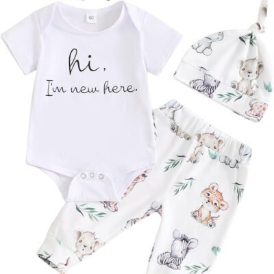 Planooar Baby Boys Elephant Print Stripe Top +Denim trousers Baby Clothes 2pcs Set