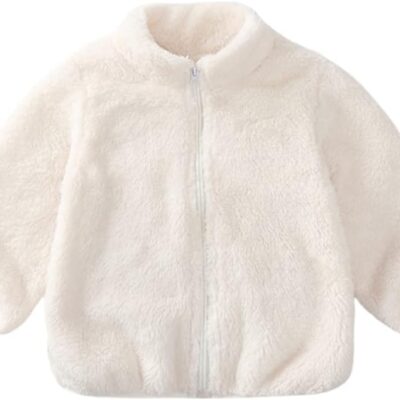 Toddler Fluffy Winter Faux Fur Coat Little Boys Girls Long Sleeve Jacket Newborn Zip up Outwear Baby Stand Collar Thick Warm Clothes Little Kids Warm Fleece Jacket Casual Button Overcoat 1-5 Years