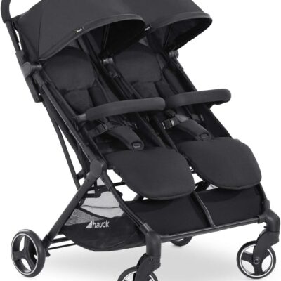 hauck Swift X Duo, Black – Twin Pushchair with Raincover, Side by Side Double Stroller (only 75 cm wide), Compact & One Hand Folding, Lie-Flat Position