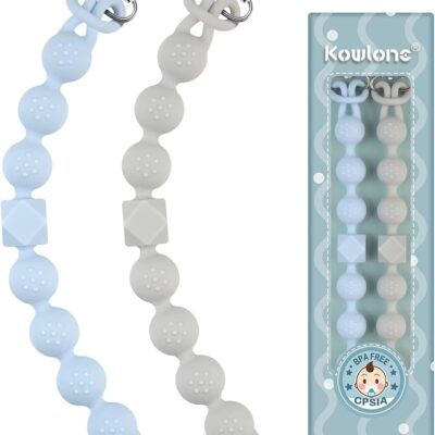 Kowlone Dummy Clips Boys Girls Silicone Soother Pacifier Chain Flexible Binky Holder Set with Texture for Teething Baby Unisex Newborn Dummies 1-Piece Design(Pastel Blue,Glacier Grey)