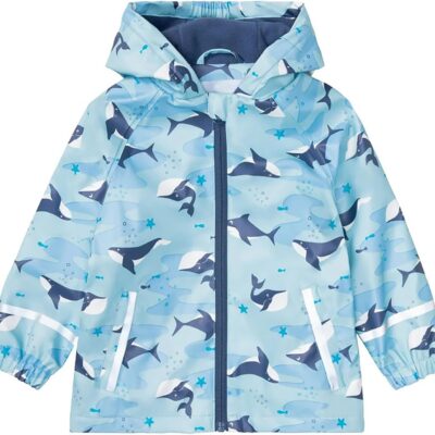 Toddler Boys Girls Outdoor Cute Animals Print Fleece Lined Raincoat Windbreakers for Kids Rain Jacket with Hood Sea Animals Printed Rainproof Jacket