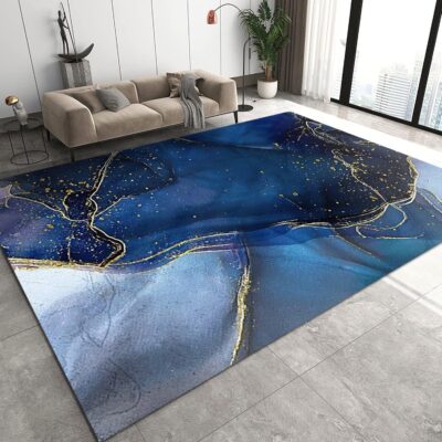 YEMYOR Boho Blue Golden Yarn Decoration Area Carpet, Stylish Modern Bedroom Rugs, Easy Clean Rug for Boys and Girls Nursery Bed Living Room Carpets Nursery Decor Rugs-70x120cm