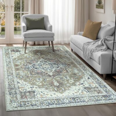 Arty Rugs Machine Washable Rug, 240x330cm, 75% Recycled Cotton, Short Pile, Non-Slip Backing, Non-Shedding, Area Rugs for Living Room, Bedroom, Kitchen, Hallway, Office, Sage