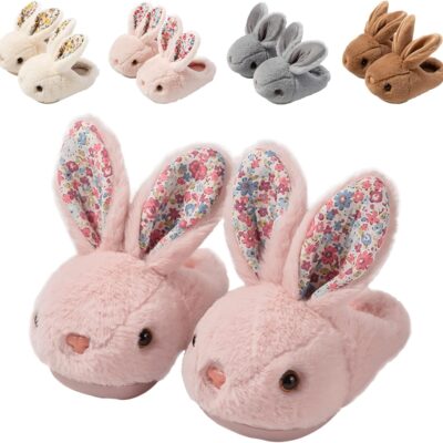 Hitopteu Kids Slippers Boys Girls Cute Bunny Slippers Winter Plush Warm House Shoes Soft Anti-Slip Novelty Rabbit Slippers for Toddler