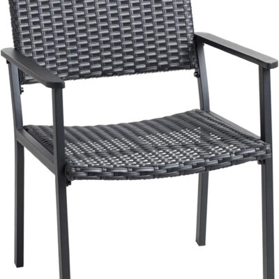 C-Hopetree Outdoor Dining Chair for Outside Patio Table, Metal Frame, Black All Weather Wicker