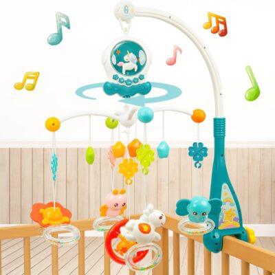 WYSWYG Cot Mobile for Babies Musical with Lights, Baby Mobile for Cot with 360°Rotating Rattles and Music Box, Musical Mobile for Baby Cot Gift for 0 3 6 12 Months,Blue