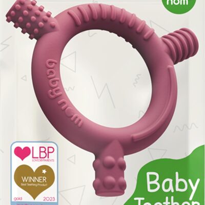 Baby Nom ® Teething Toys for Baby 3 Months and Up – Food Grade Silicone Baby Teether, Baby Teething Ring for Sensory Development, Teething Toys for Baby – Freezer Friendly, Berry