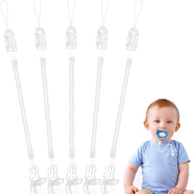 Vicloon Baby Dummy Clips,5 Pcs Dummy Clips for Baby,Spring Dummy Clip Boys Girls, Soother Pacifier Chain Holder Clips BPA Free Baby Dummy Chain for Teether Toy or Soothie (Transparent)