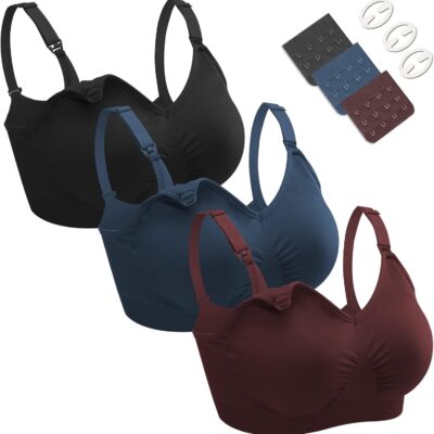 Dresime Nursing Bras, 3 Pack Wirefree Seamless Maternity Bra Women Pregnancy Breastfeeding Bralette with Extra Bra Extenders Clips