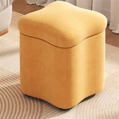 Round Ottoman with Storage Upholstered Foot Stool and Shoe Storage Box for Living Room and Bedroom Padded Seat and Kid’s Toy Chest Vanity Room Organizer 11.81 Inch